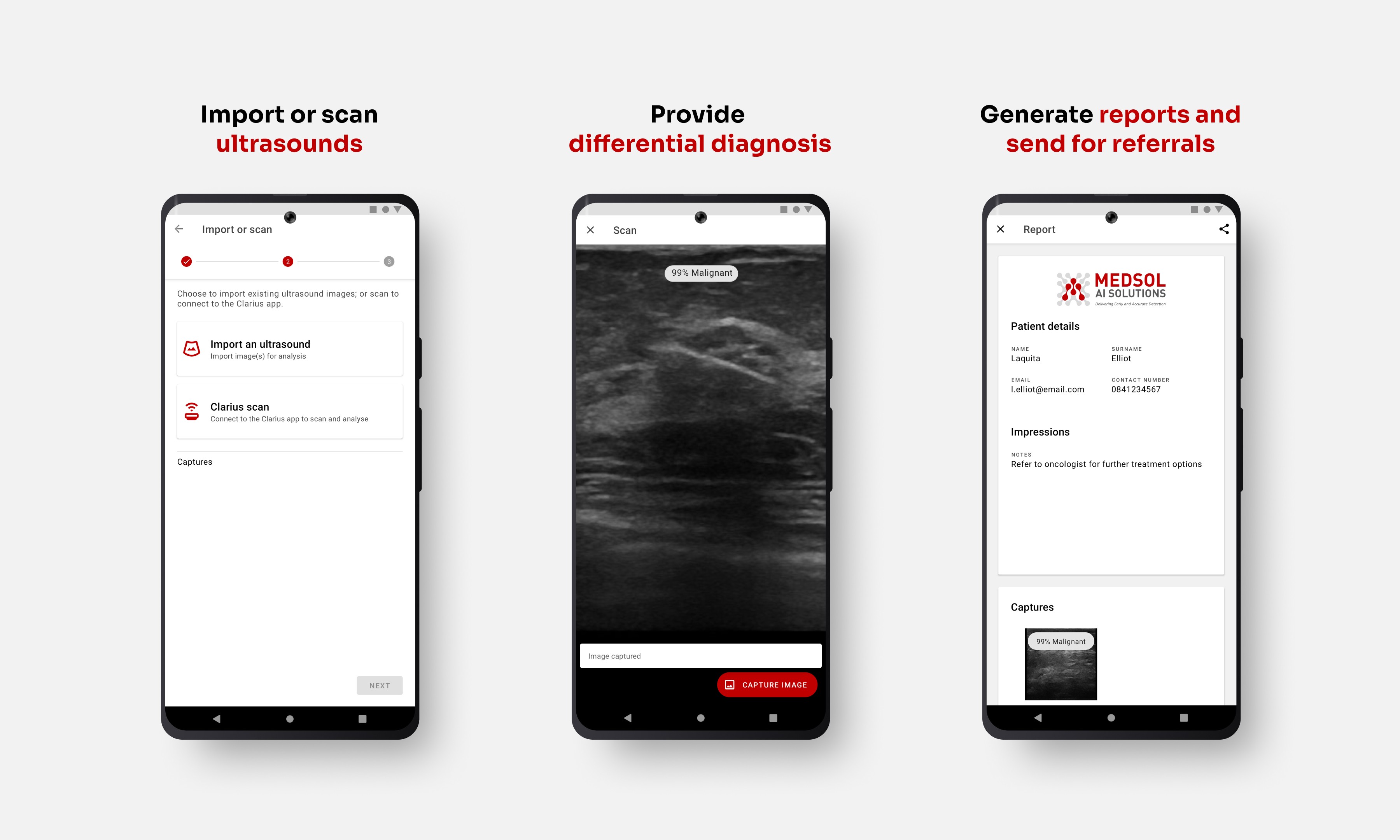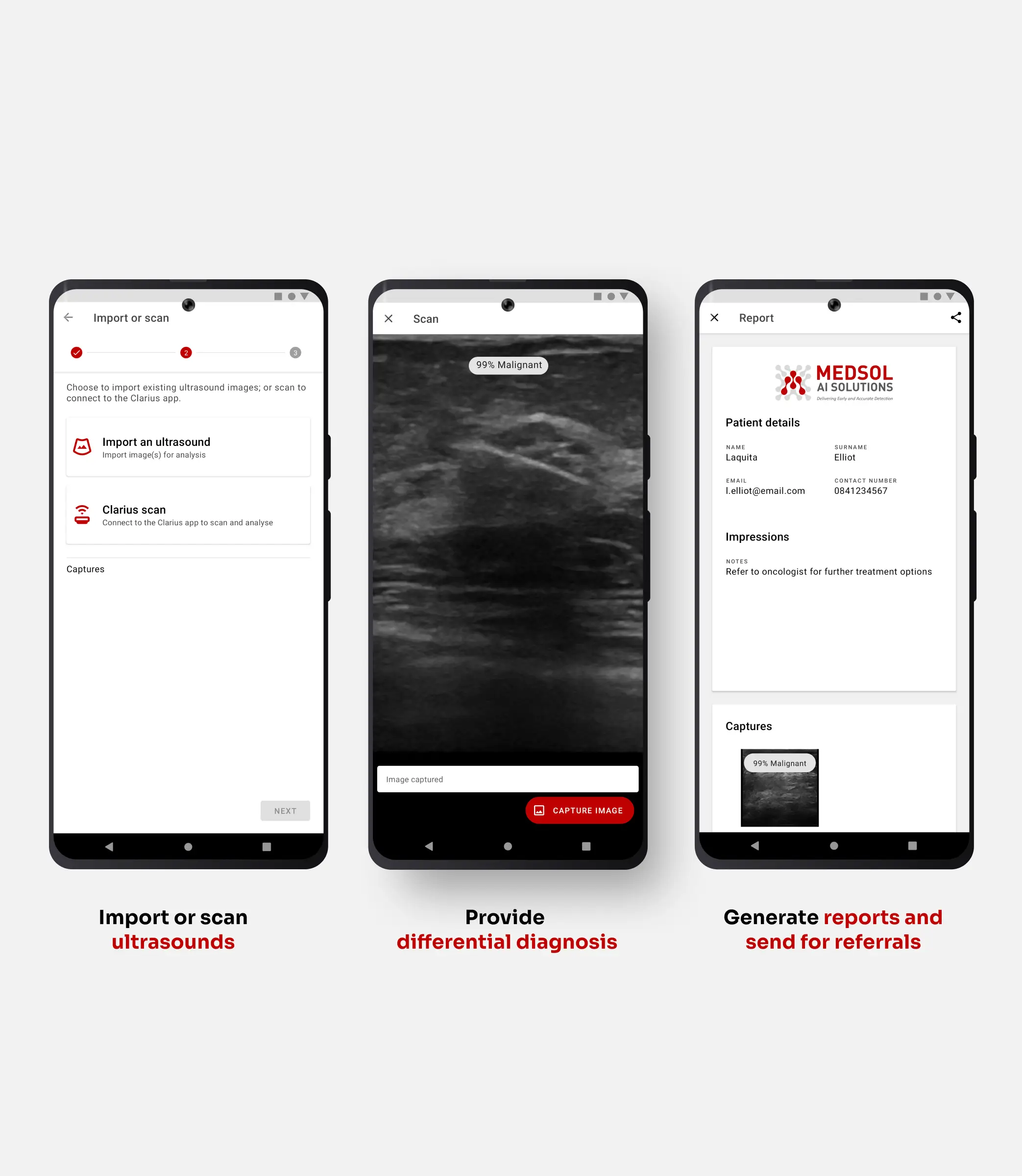 A modular architecture enabled future-proofing the app, allowing seamless updates and feature additions. Key technical achievements included integrating the app with Clarius hardware for real-time breast ultrasound scanning and implementing robust functionalities such as PDF export for diagnostic reports.